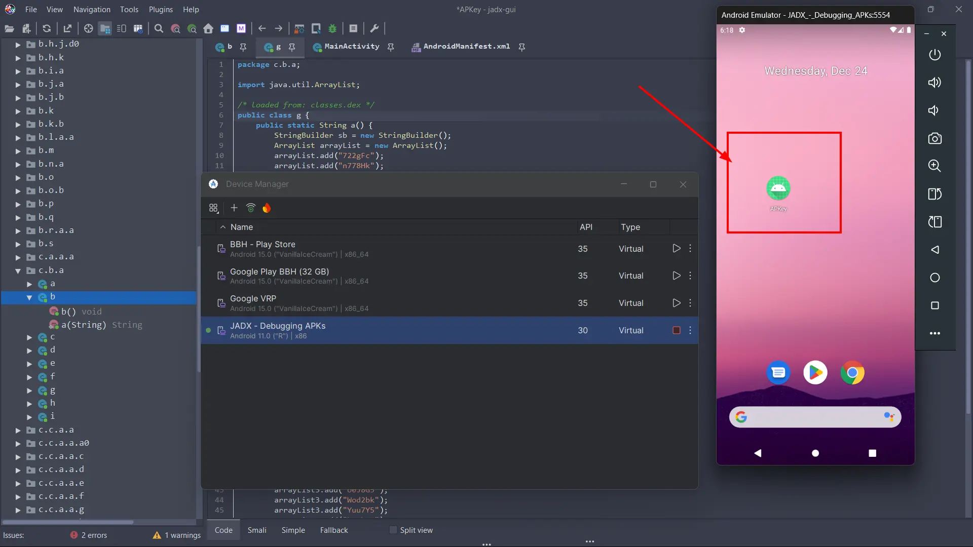 com.example.apkey. - The AndroidManifest.xml declares the MainActivity: